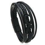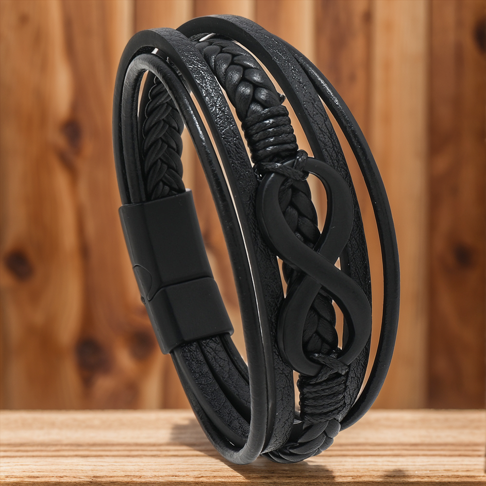 Eleganten in močan dodatek za vsakega moškega. Izdelan iz visokokakovostnega PU usnja in nerjavečega jekla z neskončnim simbolom za povezanost in brezčasno eleganco. Udoben, trpežen in z varnim magnetnim zapiranjem. Idealen za vsako priložnost.