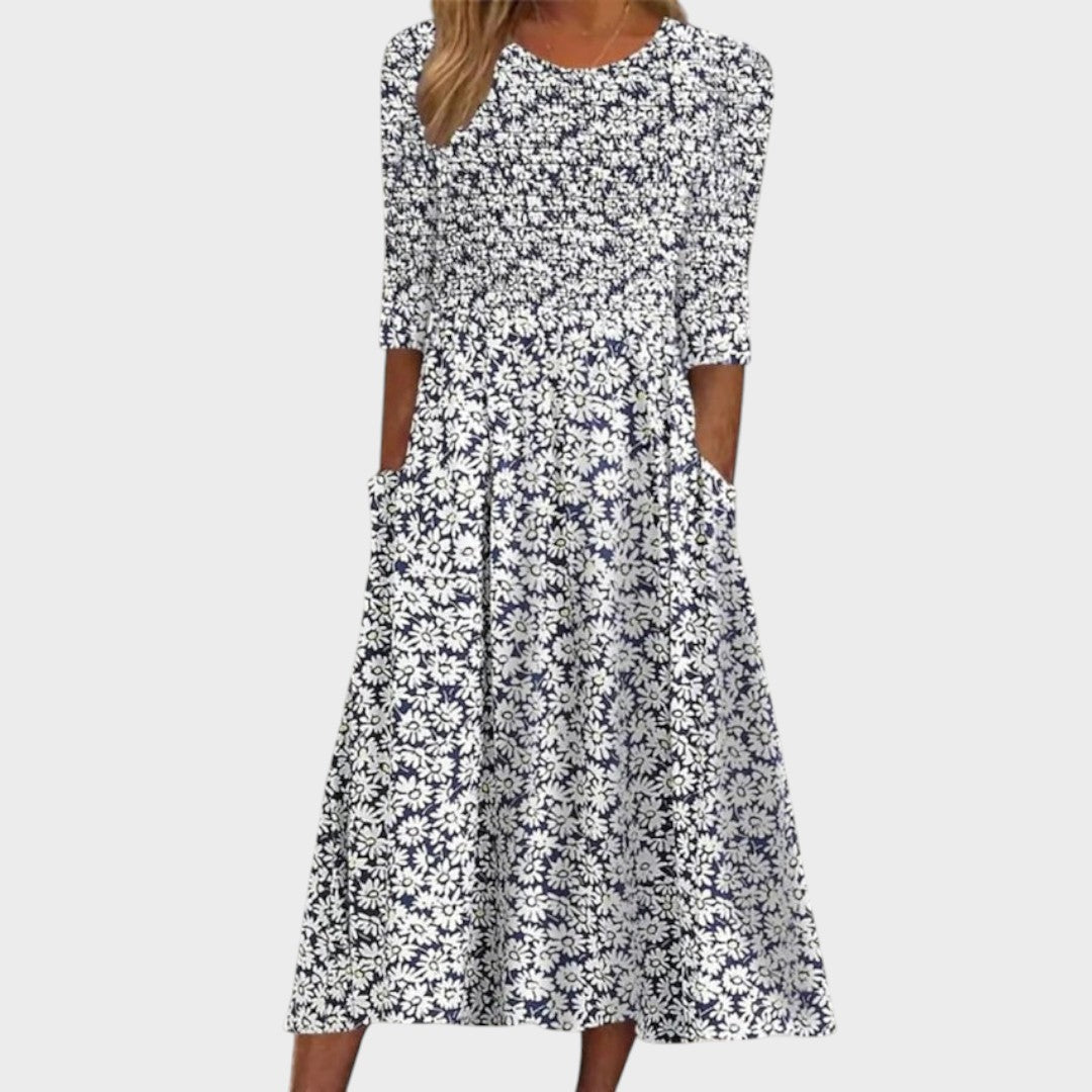 Vita - Cvetna midi obleka s žepi