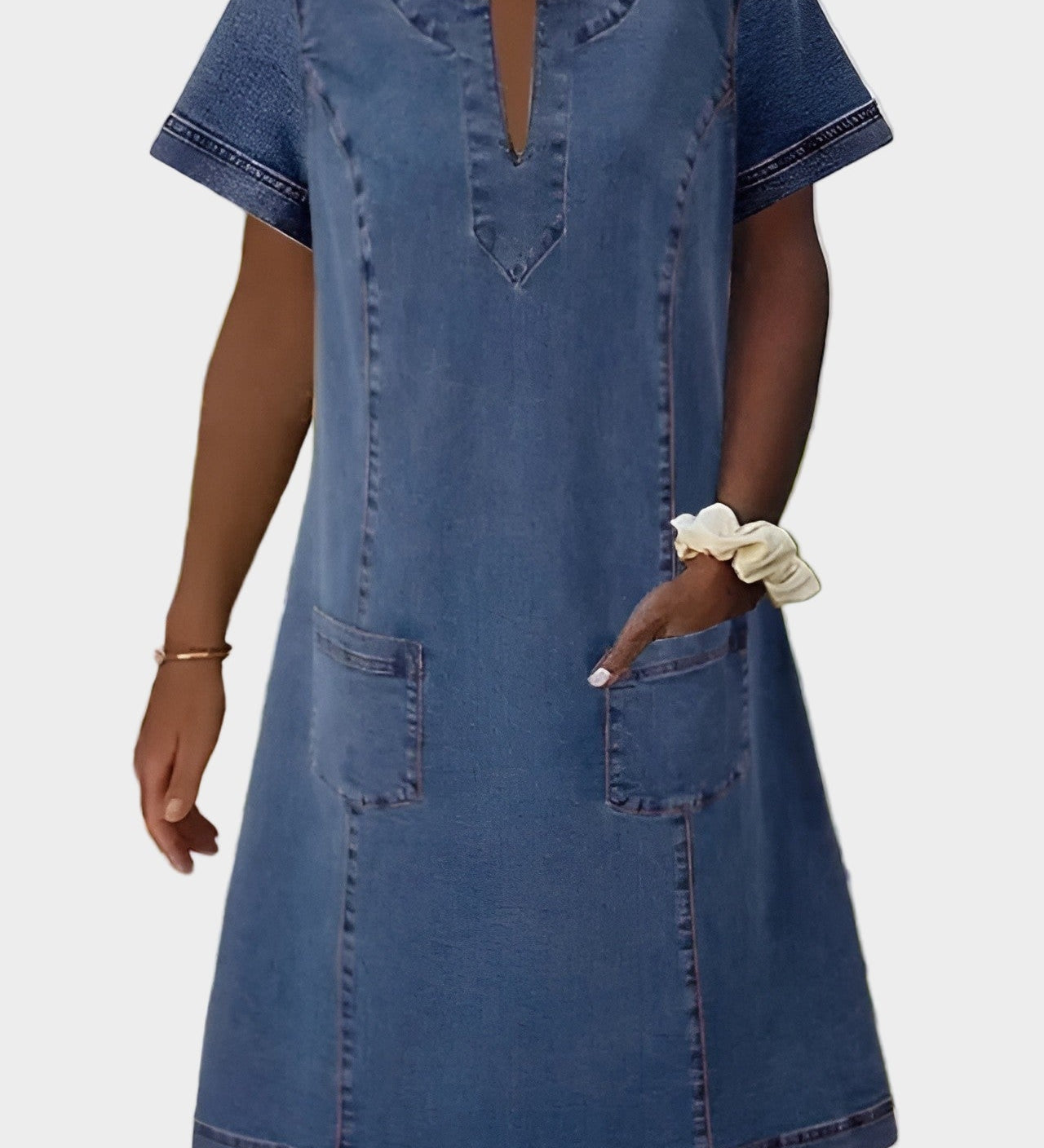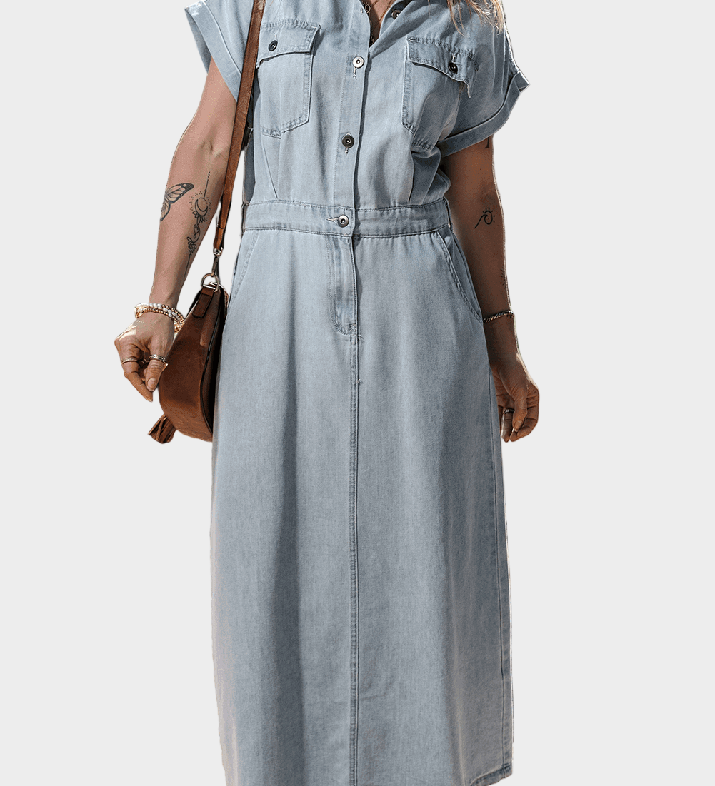 Jeans obleka z elegantnimi kratkimi netopirjastimi rokavi