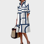 Geometrijska srajčna obleka za moden in sofisticiran videz!