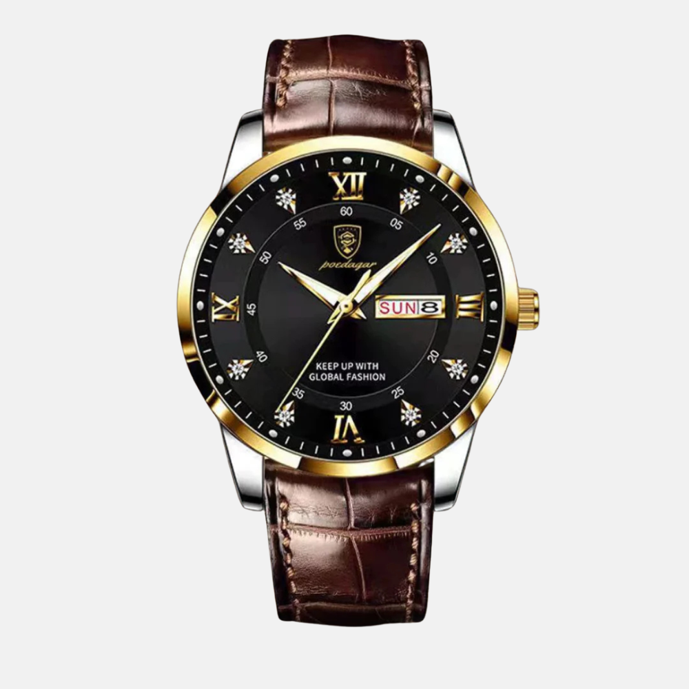 Luksuzna športna moška ura s kvarčnim mehanizmom, kronografom in usnjenim paščkom