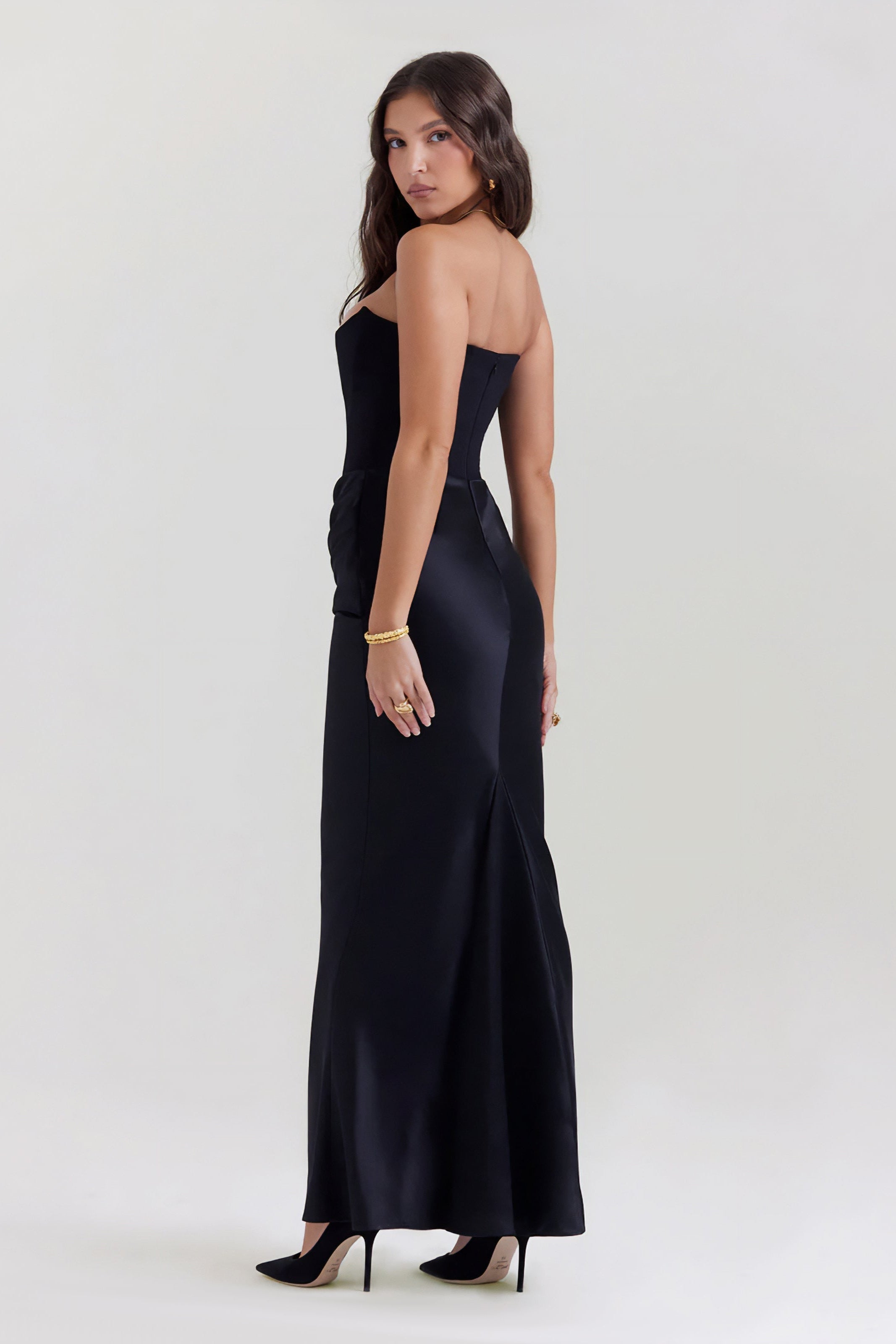 Impozantna in rafinirana, obleka Emily združuje brezčasno eleganco s skulpturalnimi detajli. Ta obleka do tal je zasnovana tako, da poudari in navduši na vsakem formalnem dogodku.