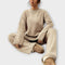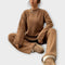 Idealno za hladnejše dni, ta set pletenine združuje absolutno udobje in moderen slog. S široko majico in ravnimi hlačami nudi sproščen in sofisticiran videz. Kombinirajte ga z škornji, supergami ali mehkimi copati za eleganten izgled.